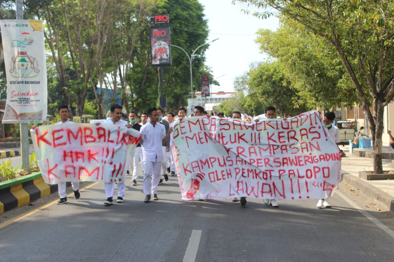 Sementara itu Jendral Lapangan Dalam Aksi Tersebut ,Haris Kepada Awak media ia mengatakan bahwa aksi demonstrasi kami kali ini merupakan aksi damai yang dimana kami meminta kepada pihak kejaksaan yang memiliki wewenang dalam tataran hukum di pemrintahan untuk mengkaji kembali mengenai asset kampus Akper Sawerigading yang di serahkan oleh pemerintah kabupaten luwu sebagai asset pemerintah ke pemerintah kota Palopo pada tanggal 16 agustus 2019.