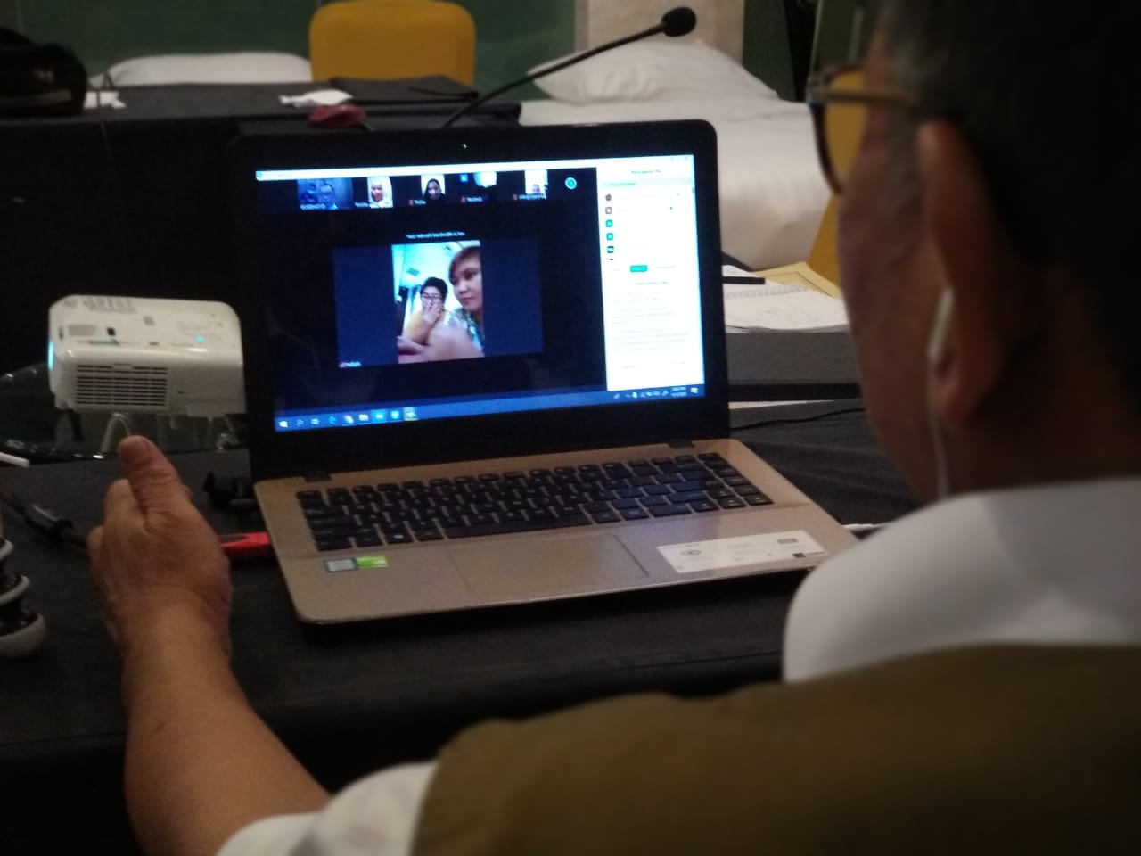 Kepala Dinas Kesehatan Sulawesi Selatan dr Ichsan Mustari MHM beri semangat kepada pasien lewat Video Conference.