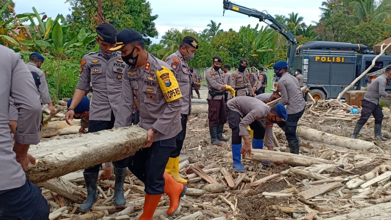 Dipimpin langsung Kapolres Luwu Utara, AKBP Agung Danargito Puluhan Personil dari Polres Luwu Utara dan BKO Polda Sulsel terjun langsung di tengah- tengah rumah warga yang di Landa pasca banjir bandang.