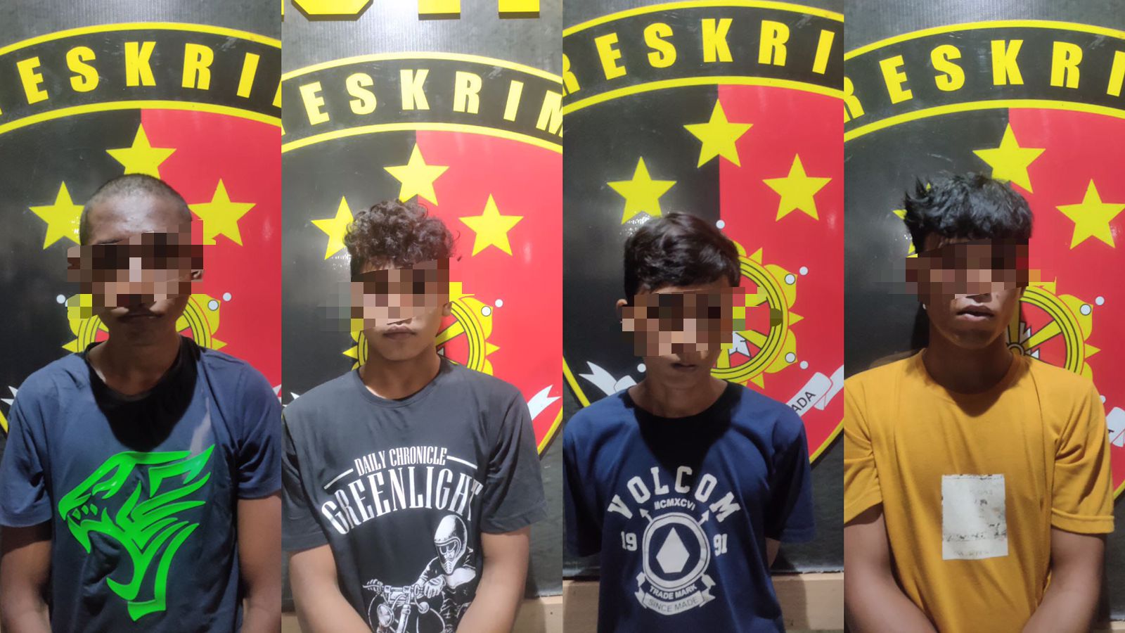 Masing-masing FI (16) warga Jl Cakalang, FA (16) warga Jl Cakalang, MA (20) warga Jl Carede dan HA (17) warga Jl Yogi S Memet.