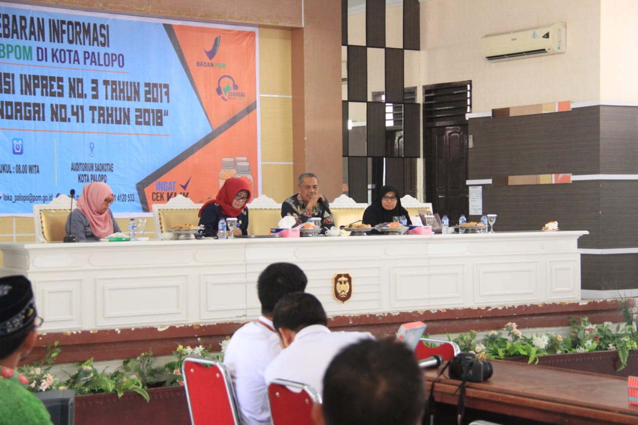 PALOPO, SATU BERITA | Sosialisasi Penyebaran Informasi Kantor Badan Pengawas Obat dan Makanan (BPOM) Kota Palopo dengan tema “Implementasi Inpres No.3 Tahun 2017 dan Permendagri No.41 Tahun 2018” yang dilaksanakan di Auditorium Saokotae Palopo, Kamis 28 November 2019.
