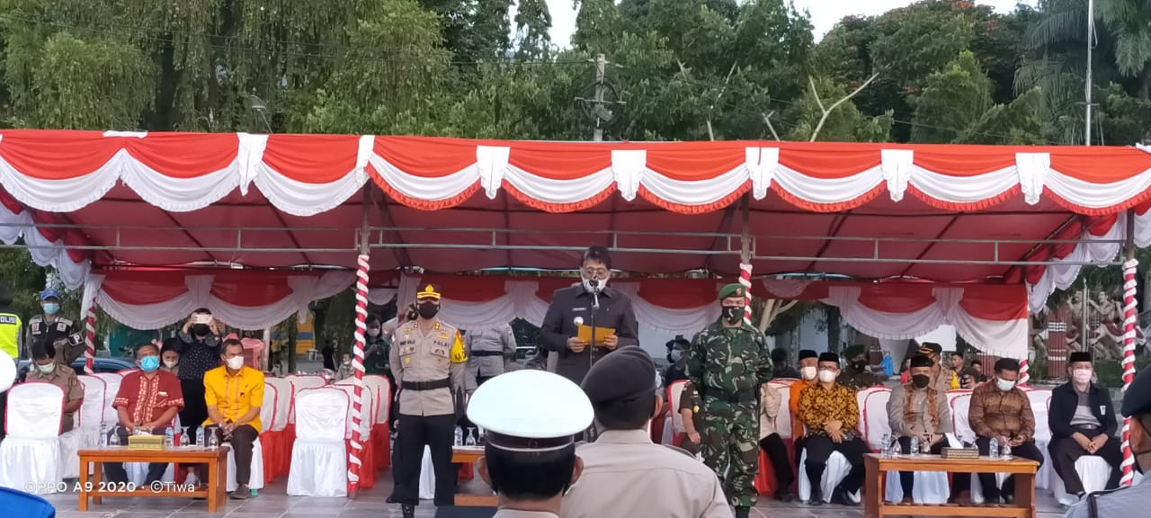TANA TORAJA, SABER | Apel Kebangsaan Tiga Pilar Polres Tana Toraja, bertempat di Plaza Kolam Makale, Jumat 30/04/21.