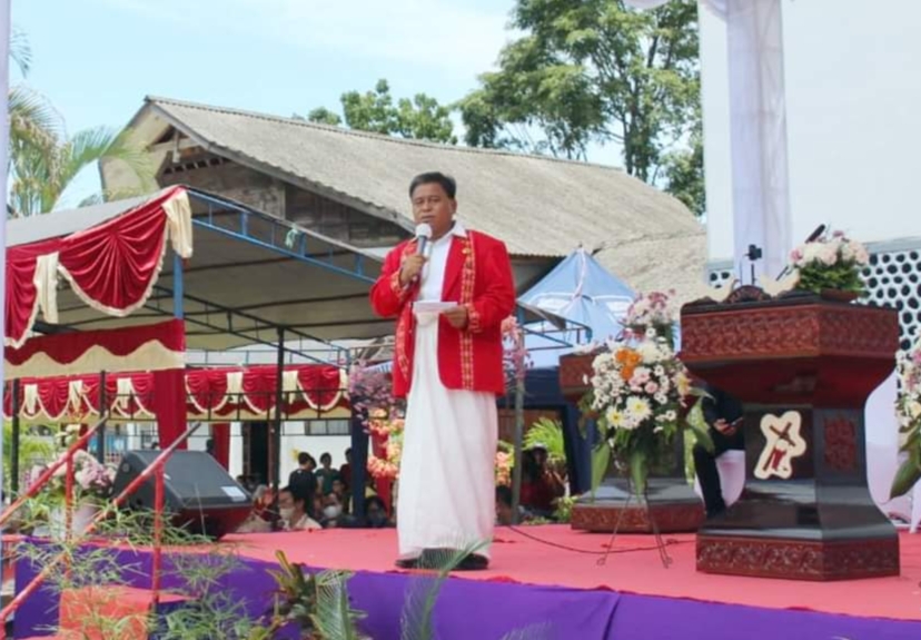 Bupati Toraja Utara Yohanis Bassang menyampaikan selamat atas perayaan ulang tahun yang ke 75 Gereja Toraja.