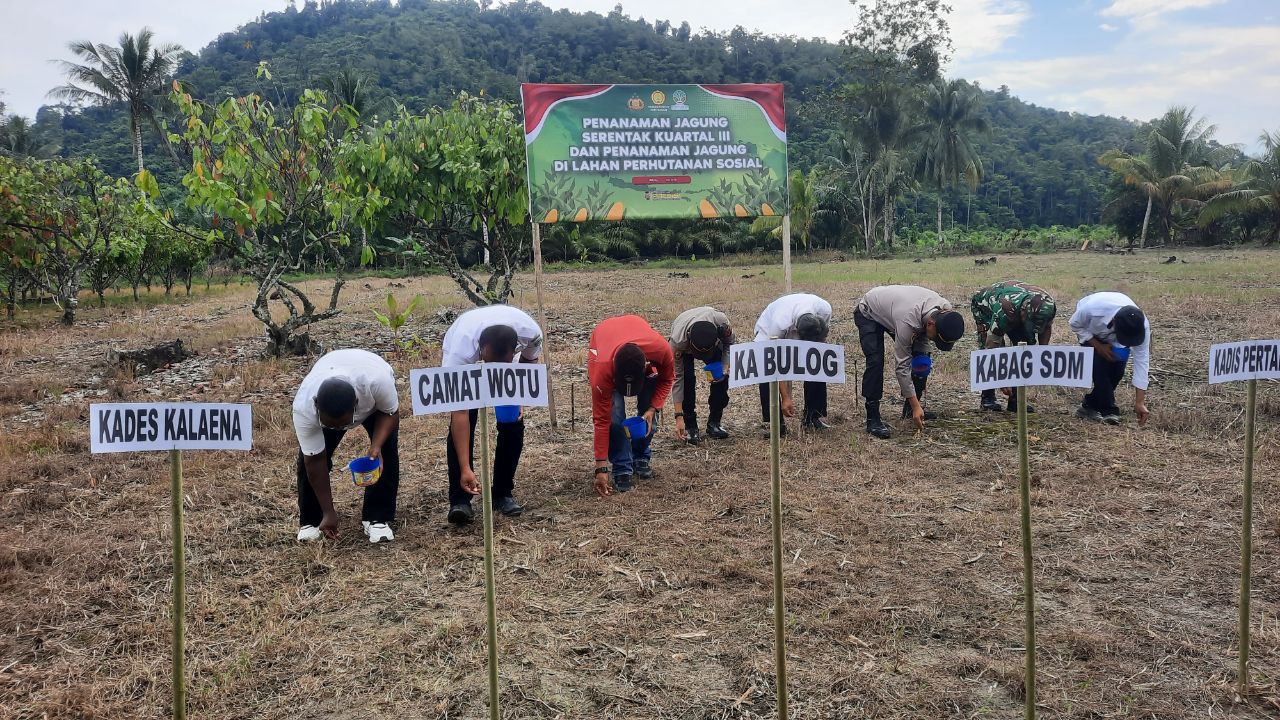 Penanaman jagung serentan turut dihadiri camat wotu kapolsek, kabulog, kadis pertanian dan beberapa pejabat lainnya.