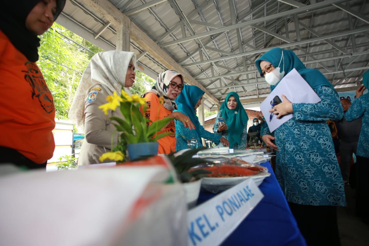 SABER, PALOPO | Ketua PKK Kota Palopo, Utia Sari Judas membuka lomba cipta menu dalam rangka menyambut hari jadi kota Palopo ke-20, di halaman kantor kecamatan Wara Timur, Selasa (28/06/2022).