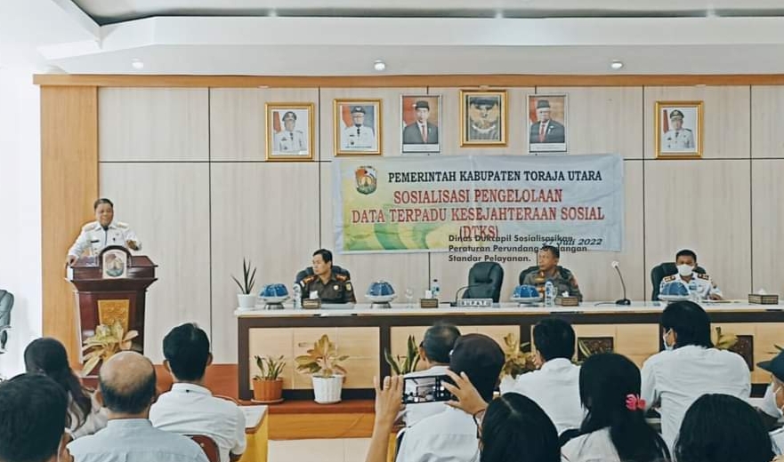 SABER, TORUT | Bupati Toraja Utara Yohanis Bassang membuka sosialisasi pengelolaan data terpadu kesejahteraan sosial (DTKS) yang di gelar Dinas Sosial Kabupaten Toraja Utara. di ruang pola kantor Bupati Toraja Utara. Rabu (27/07/22).