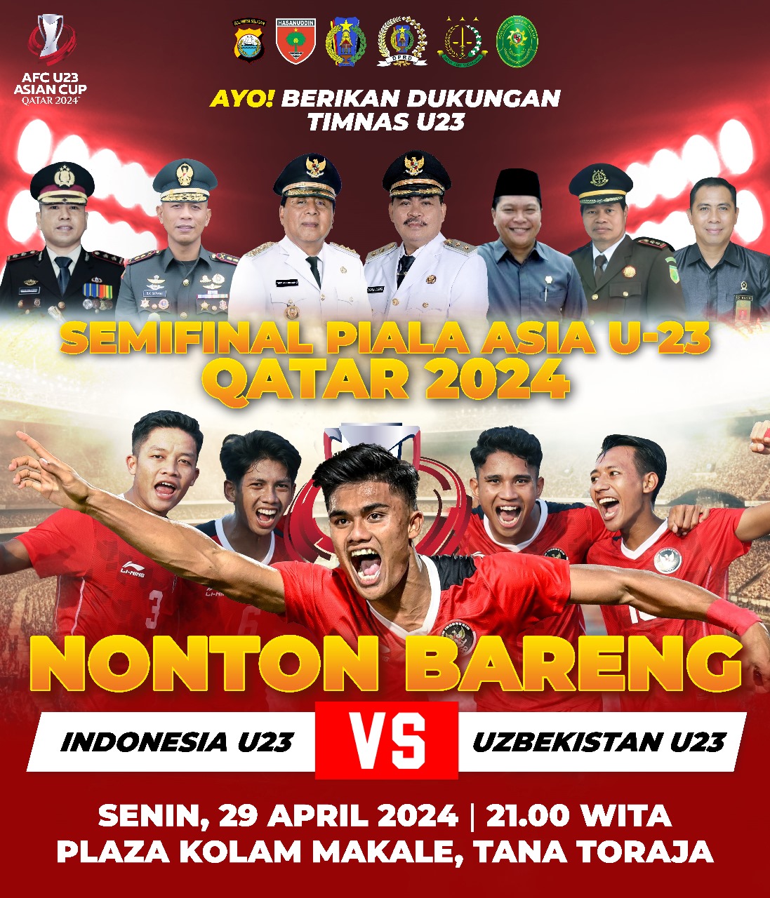 Kapolres Tana Toraja AKBP Malpa Malacoppo mengatakan Nobar ini dilaksanakan atas kerjasama dengan Pemda dan Forkopimda Kabupaten Tana Toraja untuk mengajak seluruh elemen masyarakat bersama – sama memberikan dukungan Timnas Indonesia U-23 saat berlaga yang rencananya akan disiarkan pada Senin 29 April 2024 Pukul 21.00 Wita dimana Timnas Indonesia U-23 akan berhadapan dengan Timnas Uzbekistan U-23,”