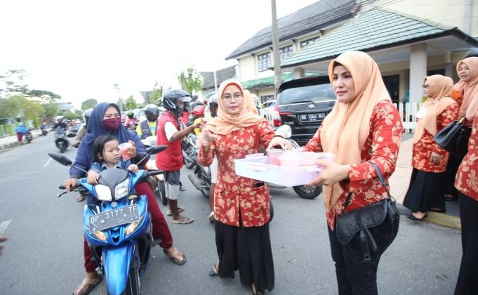 SABER, PALOPO | Dharma Wanita Persatuan (DWP) bersama Pengurus TP PKK Kota Palopo memperingati hari Kartini dengan membagikan 1.000 Takjil di empat titik Kota Palopo. pada Jumat (22/4/2022).