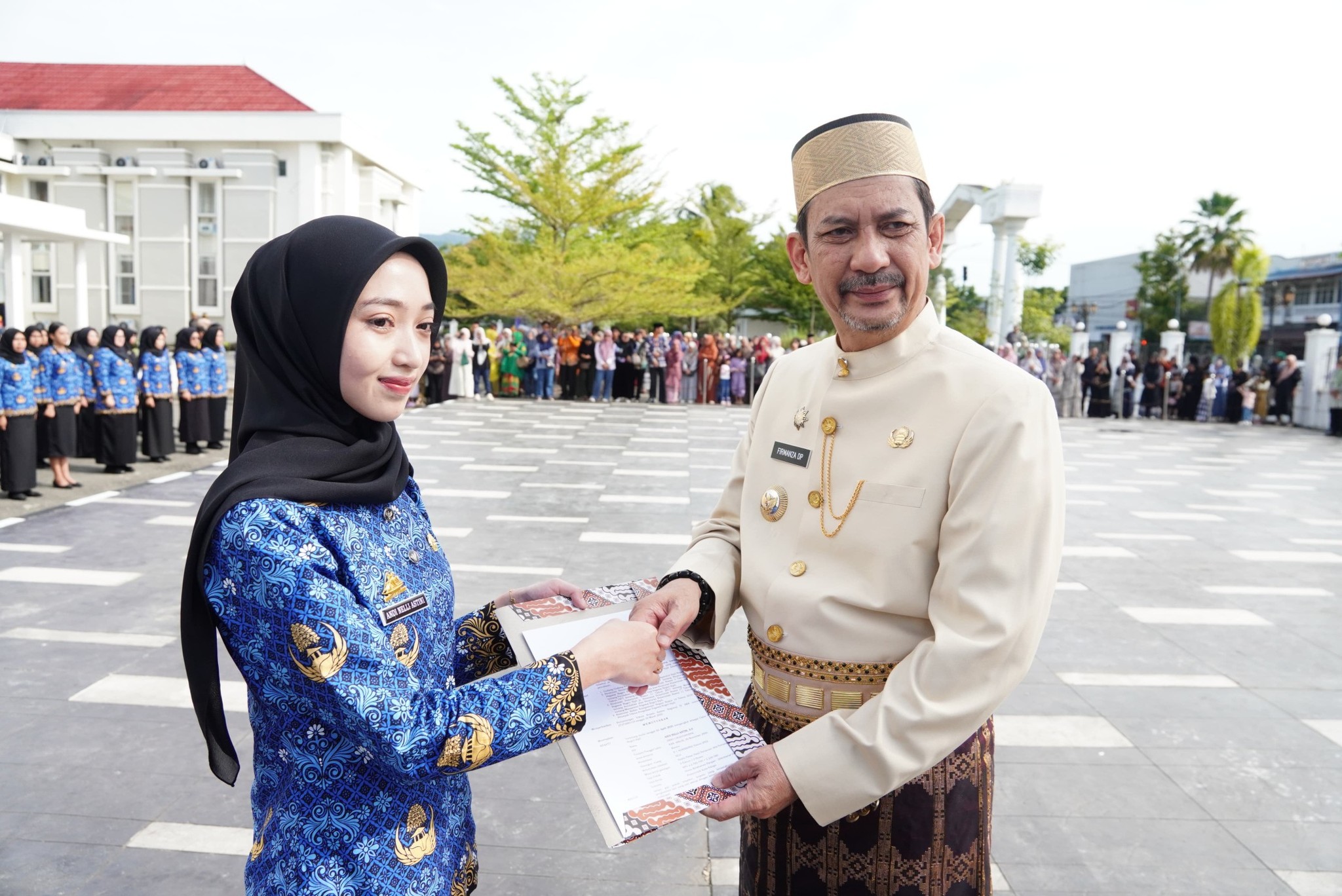 SABER, PALOPO | Usai Upacara Peringatan Hari Pendidikan Nasional (Hardiknas), Pj Wali Kota Palopo, H. Firmanza DP, menyerahkan secara simbolis Surat Keputusan Calon Pegawai Negeri Sipil (CPNS).