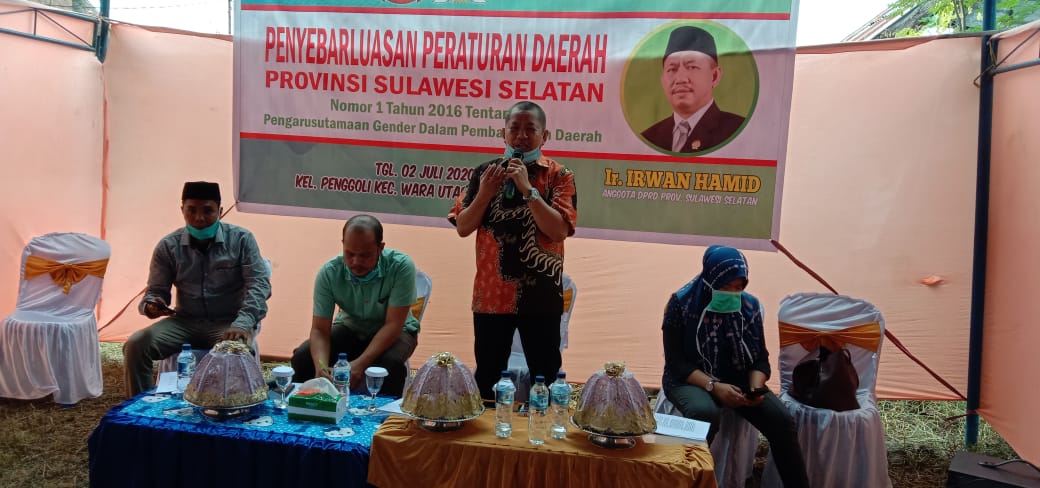 Fraksi Partai Kebangkitan Bangsa (PKB) dapil Luwu Raya ir. Irwan Hamid laksanakan Sosialisasi Penyebarluasan Peraturan Daerah Provinsi Sulawesi Selatan Nomor 1 Tentang Pengarusutamaan Gender Dalam Pembangunan Daerah.