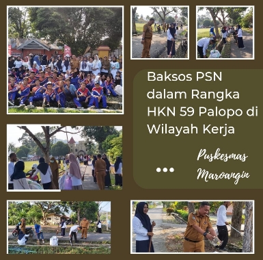Khusus di Puskesmas Maroangin, para tenaga kesehatan bersama lintas sektor melakukan Bakti sosial pemberantasan sarang nyamuk (PSN) yang di laksanakan di Kunnu ,Kelurahan Maroangin, Kecamatan Telluwanua.