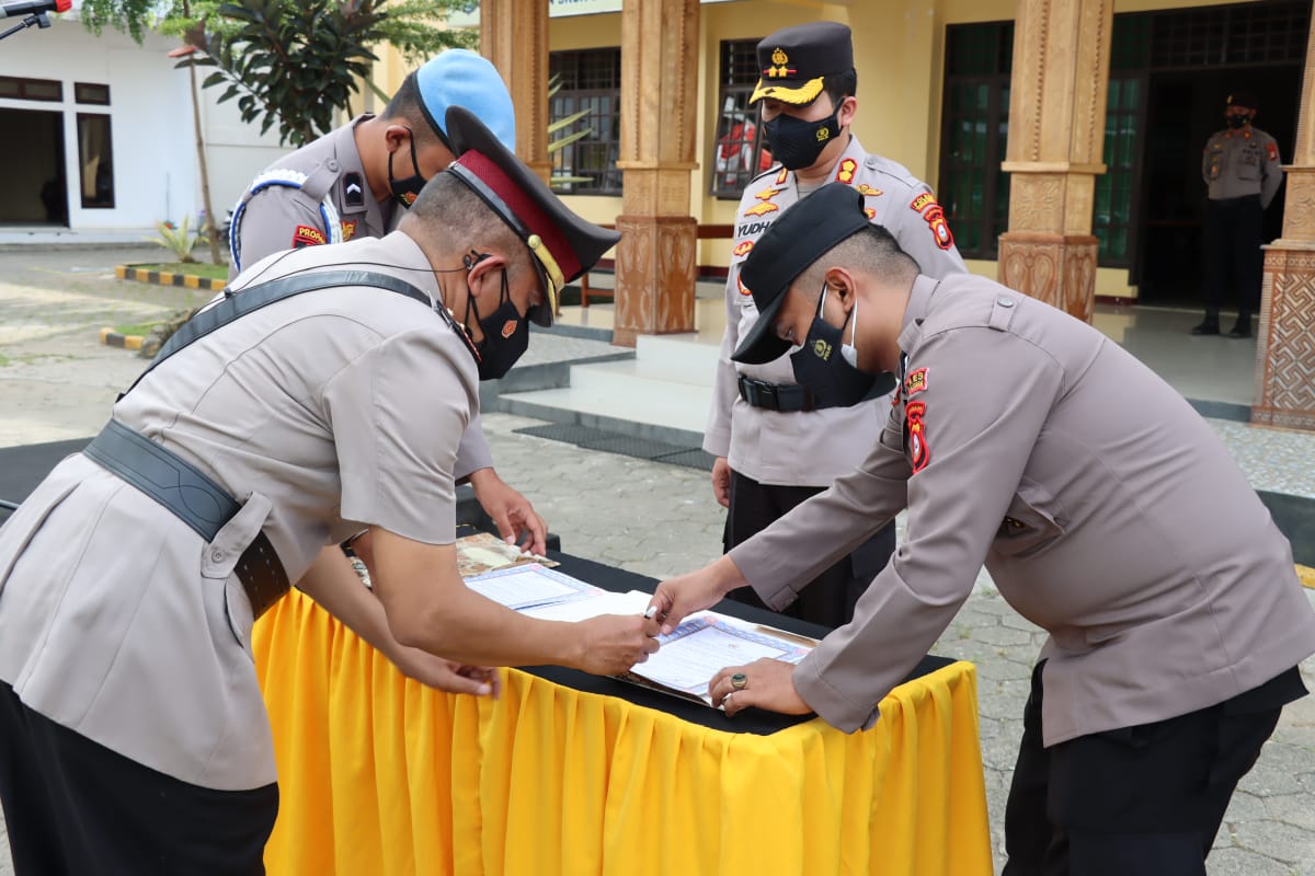 Lanjut Kapolres menyampaikan terkait dengan instruksi Kapolri kita tentunya lakukan konsolidasi kedalam yaitu penguatan arahan-arahan Kapolri yaitu penekanan pelanggaran oleh anggota ini merupakan arahan yang tegas dan menjadi warning bagi kita bahwa segala bentuk pelanggaran pidana tidak ada kata ampun dilakukan secara tegas bahkan hingga pemecatan, namun bagi personil yang berprestasi tentunya akan di berikan penghargaan” tegas Yudha.(*)