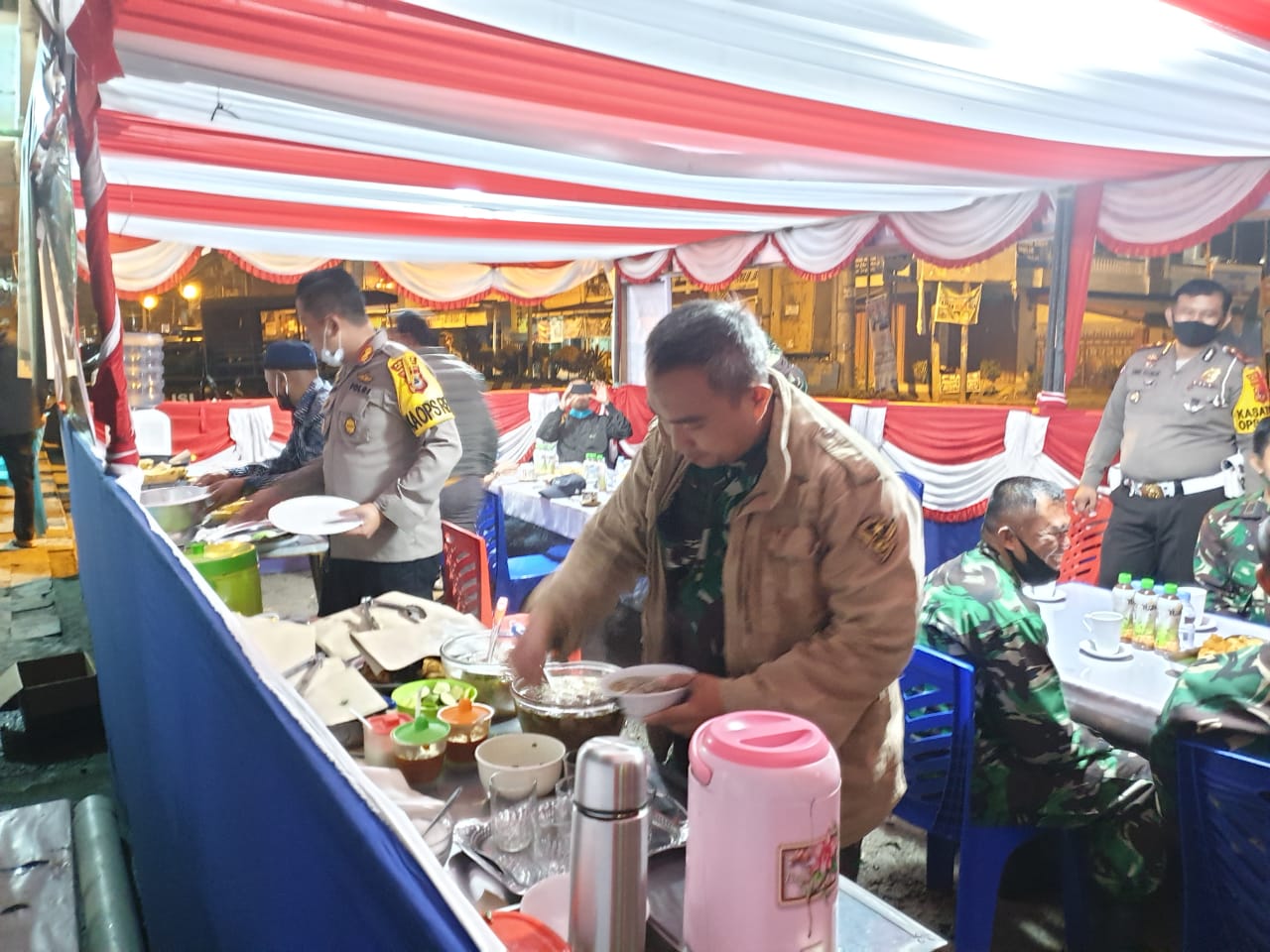 TORUT, SATU BERITA | Kapolres Toraja Utara AKBP Yudha Wirajati, S.IK., M.H melakukan sahur bersama anggota pengamanan Pos Pelayanan Ketupat di Jl Andi Mappanyukki, Kelurahan Penanian, Kecamatan Rantepao Selasa (5/5/2020).