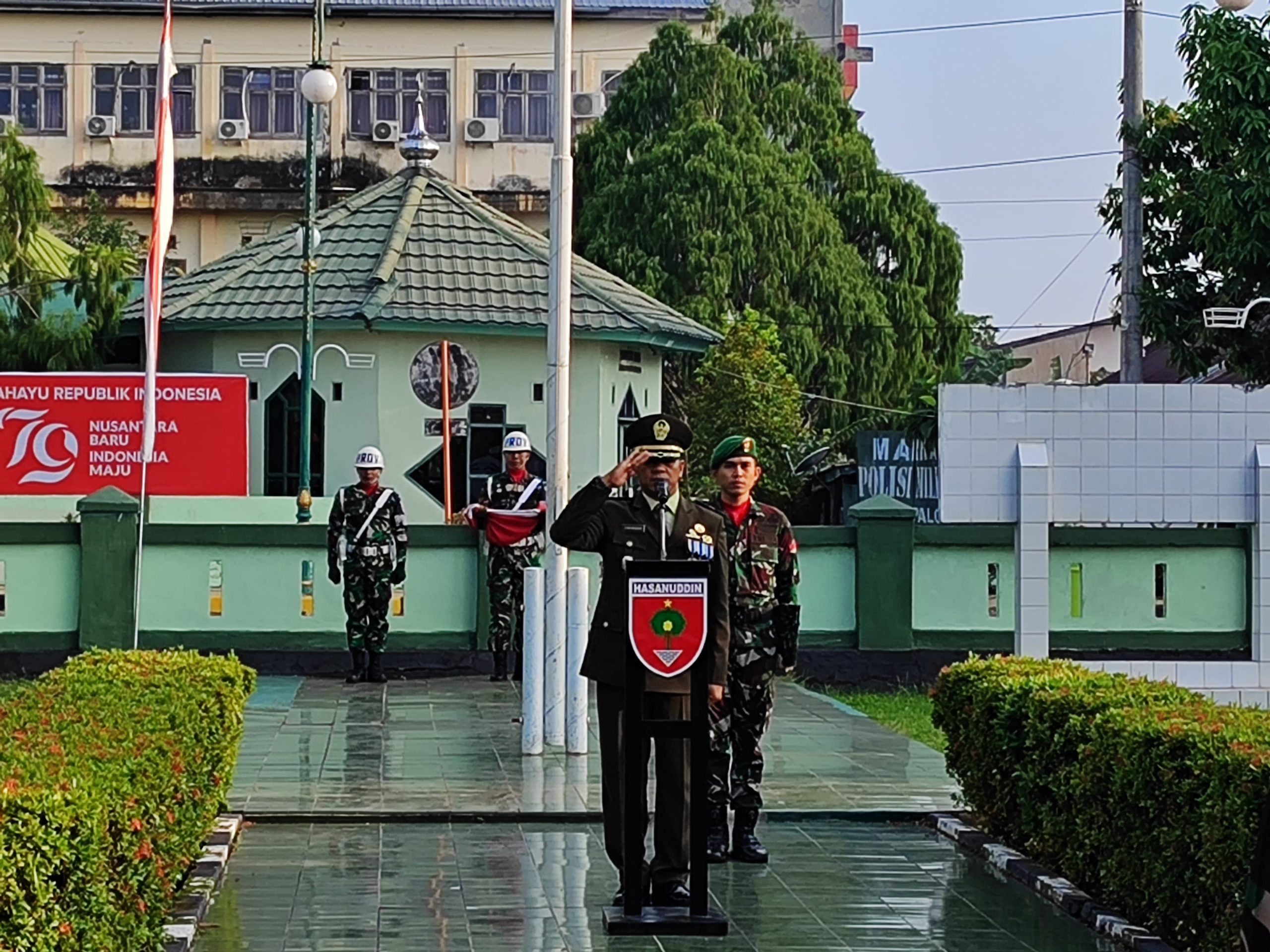SABER, PALOPO  |  Kasdim 1403 Palopo Mayor Arm Syafaruddin menjadi inspektur upacara peringatan Hari Ulang tahun Ke-79 Kemerdekaan Republik Indonesia, bertempat di Makodim 1403 Palopo. Sabtu (17/08/2024).