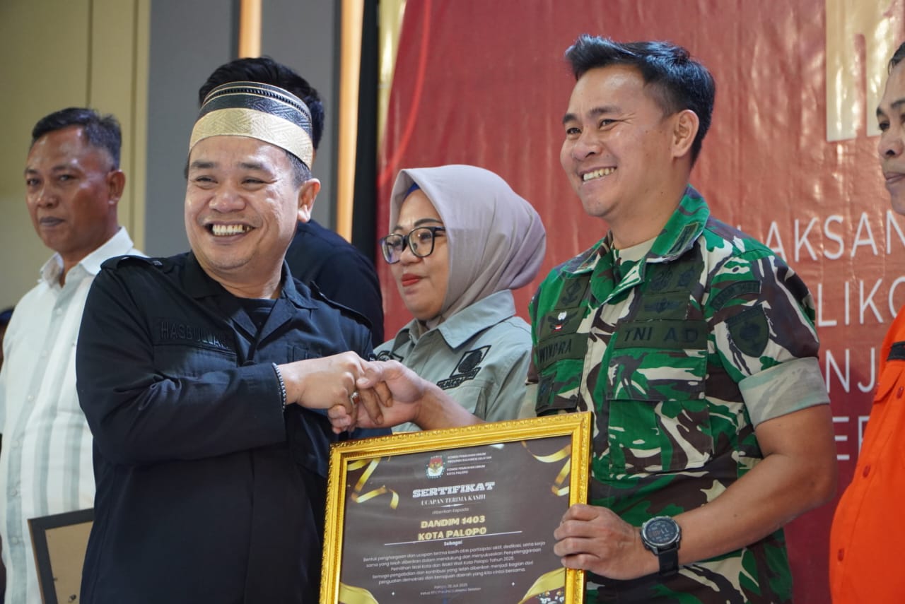 SABER, PALOPO | Kodim 1403/Palopo menerima Piagam Penghargaan dari Komisi Pemilihan Umum (KPU) Provinsi Sulawesi Selatan atas dukungannya dalam pelaksanaan Pemungutan Suara Ulang (PSU) yang digelar pada 25 Mei 2025 lalu.