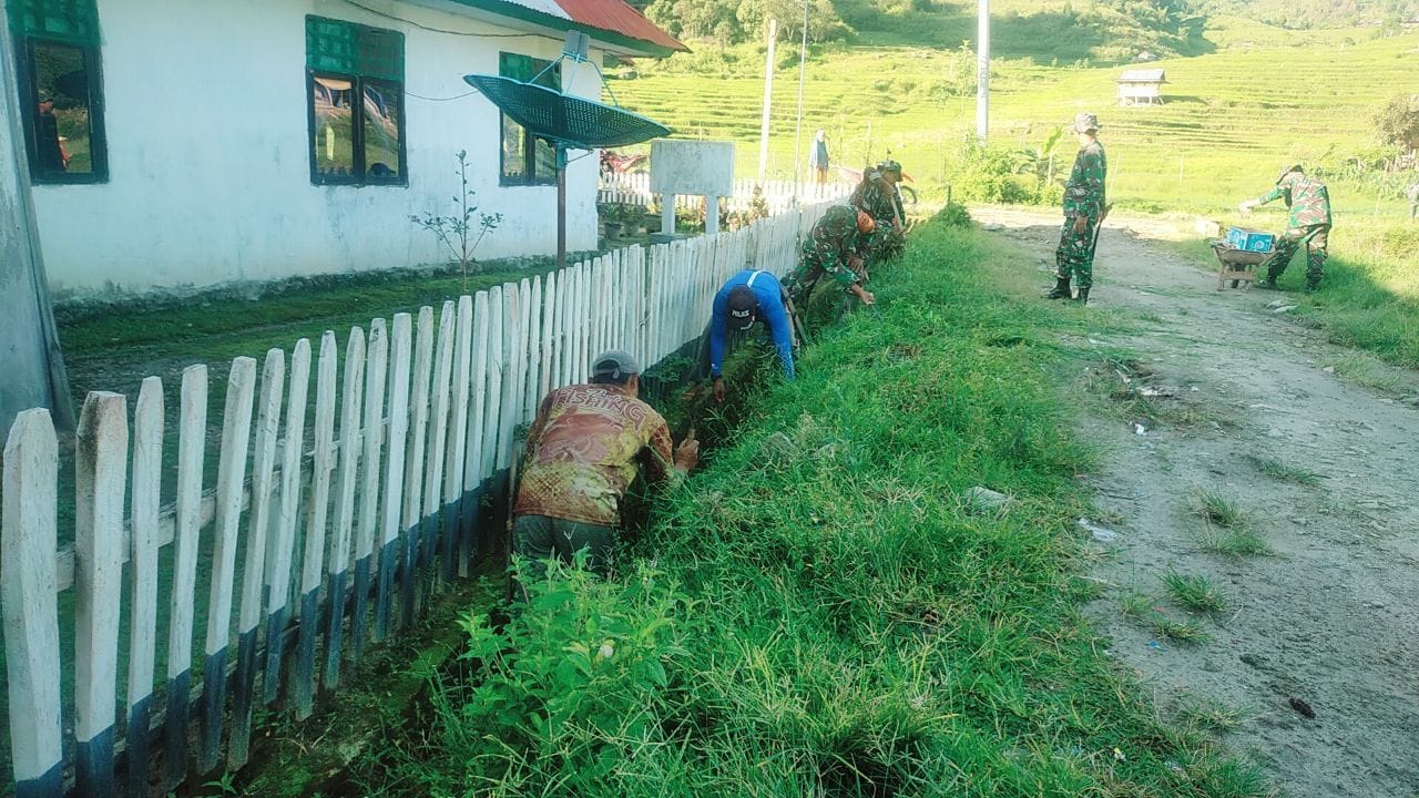 SABER, LUTRA | Kodim 1403/Palopo melalui Koramil 1403-08/Limbong melaksanakan kegiatan pembersihan saluran air di Desa Limbong, Kecamatan Rongkong, Kabupaten Luwu Utara, pada Rabu (12/11/2025).