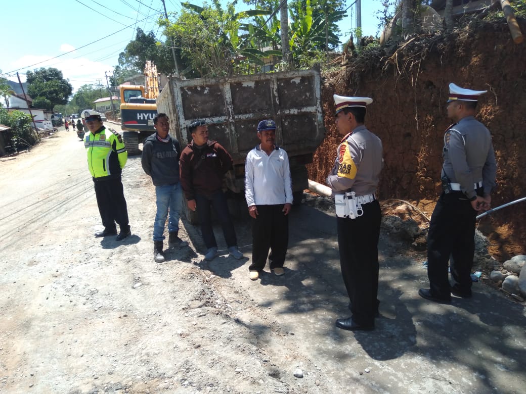 TORUT, SATU BERITA | Guna hindari kemacetan terjadinya kecelakaan akibat dari pekerjaan perluasan jalan di Tallunglipu, Kab. Toraja Utara, Kasat Lantas Polres Tator AKP. A. Tanri Abeng berinisiatif membangun komunikasi dengan pihak pelaksana proyek perluasan jalan, PT Sabar Jaya, Sabtu,(19/10/2019).