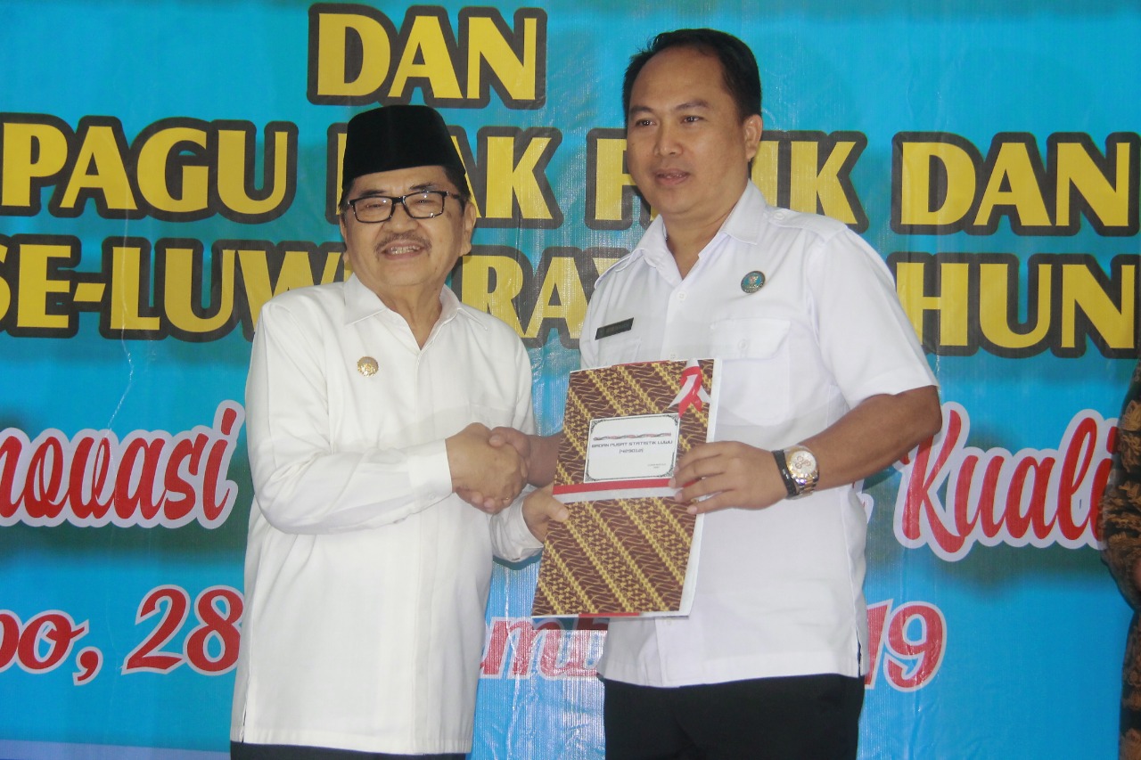 Penyerahan naskah SK penetapan kawasan transmigrasi Wara Palopo oleh direktur PKP2 Trans yang diwakili oleh Kasubdit Fasilitasi Penetapan Kawasan Transmigrasi Direktur Bina Potensi Kawasan Transmigrasi oleh ibu Hidanafi Asrianti diserahkan kepada Walikota Palopo HM. Judas Amir.