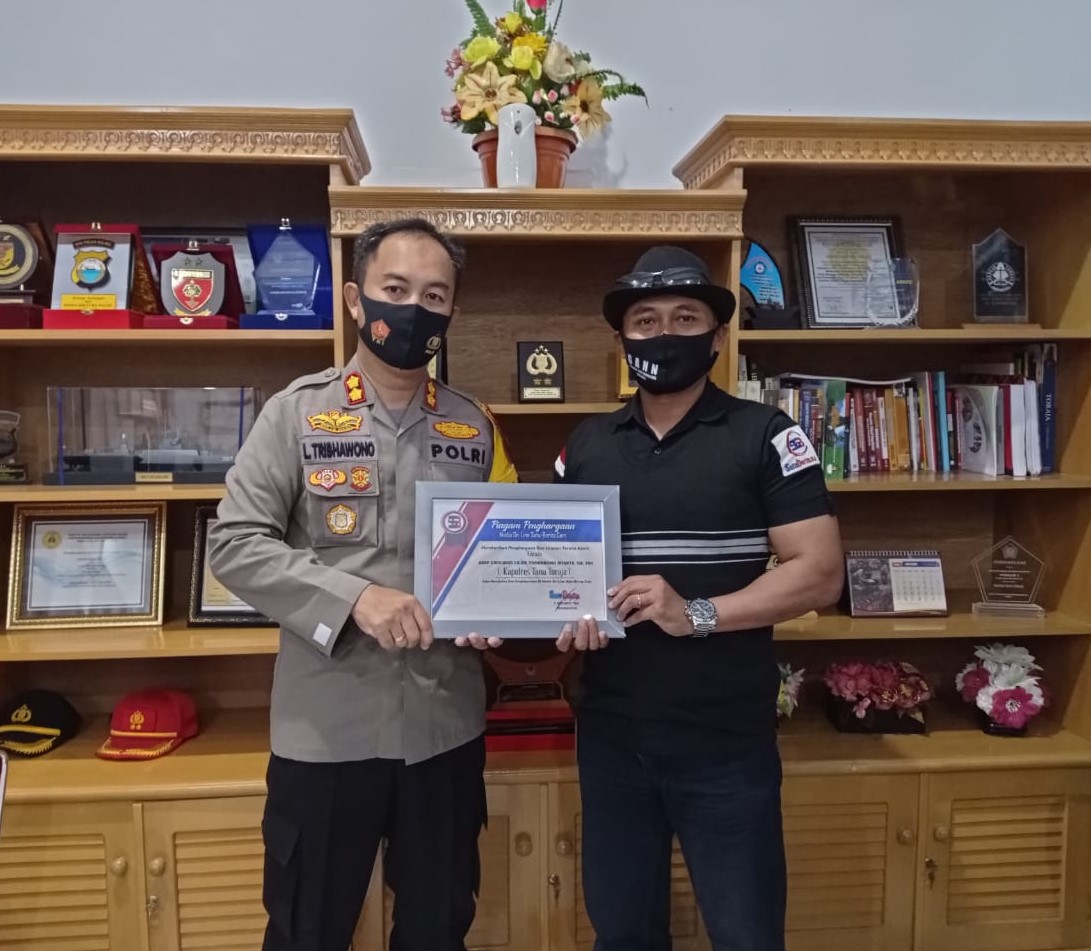 Dalam silaturahmi itu, Pimpinan Umum Satu-Berita.com, S. Heriyanto Tiwa juga menyerahkan piagam penghargaan kepada Kapolres Tana Toraja di Mapolres Tana Toraja, Jalan Bhayangkara Malangke, Bombongan, Makale, Kabupaten Tana Toraja, Sulawesi Selatan, Rabu 21/10/2020.