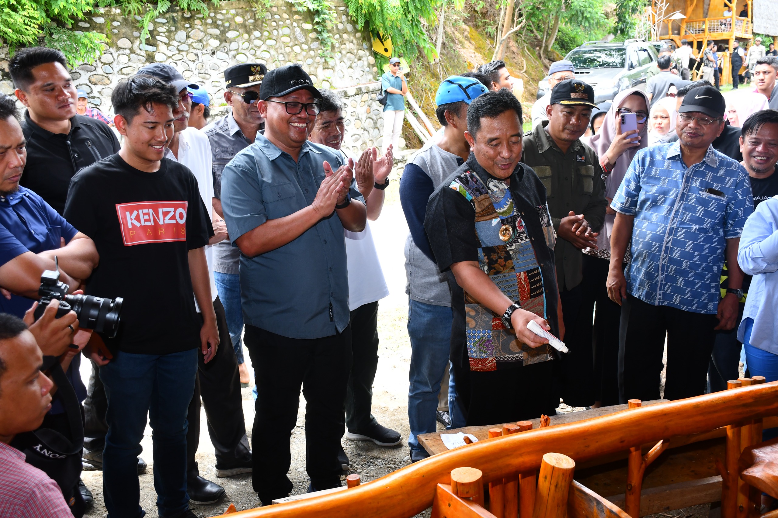 Saat kedatangan Pj. Gubernur Sulawesi Selatan Bahtiar meresmikan salah satu tempat wisata dan menuliskan “Nikmati Indahnya Palopo Di-Gubuk Indonesia Puncak Gunung Kambo Palopo-Sulsel” yang juga ditandatangani secara langsung.