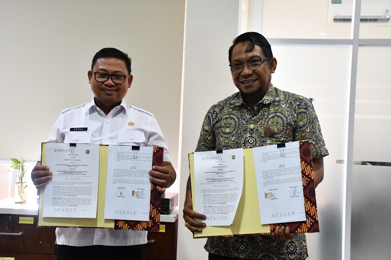 SABER, PALOPO | Pj. Wali Kota Palopo, Asrul Sani menandatangani rencana kerja antara Pemerintah Kota Palopo dengan BPJS Kesehatan Cabang Palopo dalam rangka Universal Health Coverage untuk tahun 2024 di Ruang Rapat BPJS Kesehatan Cabang Palopo. Rabu, 27 Desember 2023.