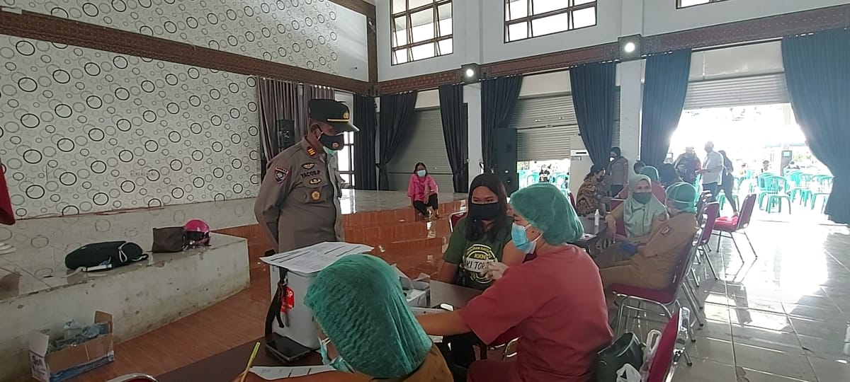TATOR, SABER | Menjelang Hari Kemerdekaan RI ke-76, Polres Tana Toraja yang bekerjasama dengan Dinas Kesehatan Kab. Tana Toraja kembali menggelar vaksinasi covid -19 dosis II jenis Sinovac, yang bertempat di Gedung Tammuan Mali, Jalan Ampera, Makale, Kab. Tana Toraja, Senin (16/08/21).