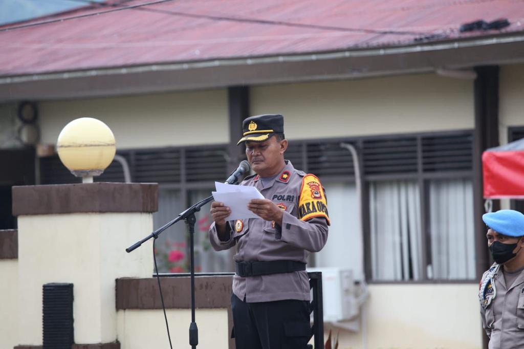 SABER, PALOPO | Kapolres Palopo AKBP Muh. Yusuf Usman yang diwakili oleh Wakapolres Palopo Kompol Sanodding memimpin apel gelar pasukan Operasi Patuh 2022, di depan Mako Polres Palopo, Senin (13/06/2022).