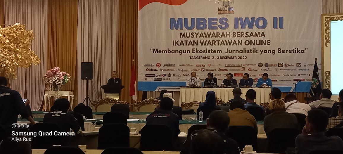 SABER, JAKARTA | Pengurus Pusat Ikatan Wartawan Online (PP IWO) menggelar Musyawarah Bersama (Mubes) ke- II dengan mengangkat tema “Membangun Ekosistem Jurnalistik yang Beretika”. Jumat dan Sabtu (2-3 Desember) di Ballroom Hotel Istana Nelayan, Tangerang.