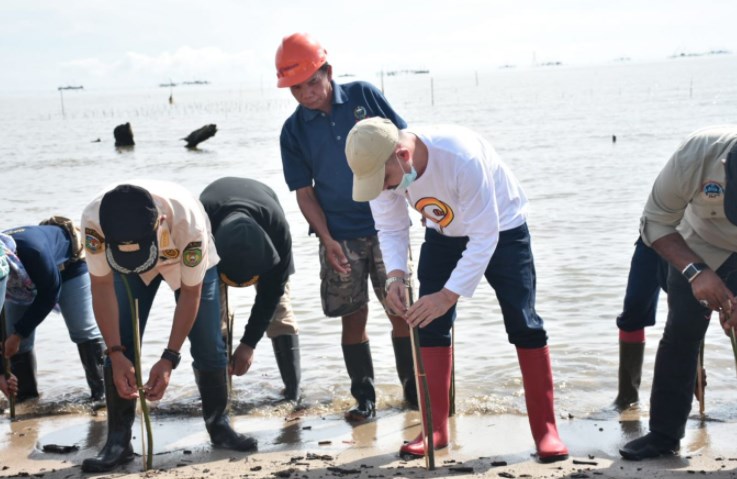PALOPO, SABER | Kantor Cabang Dinas Kelautan Luwu Raya melakukan penanaman Mangrove 40.000 batang di Kelurahan Benteng Kecamatan Wara Timur, Minggu (28/11/2021).