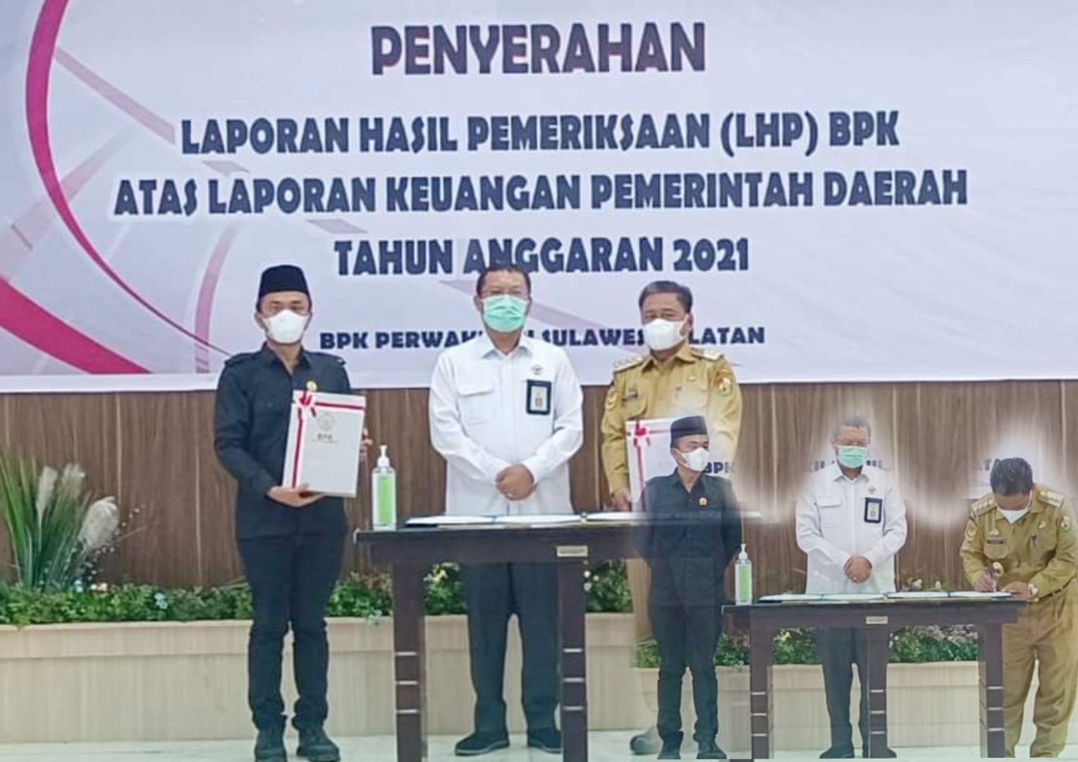 SABER, TORUT | Badan Pemeriksa Keuangan Republik Indonesia (BPK-RI) Perwakilan Provinsi Sulawesi Selatan menyerahkan Laporan Hasil Pemeriksaan (LHP) atas Laporan Keuangan Pemerintah Daerah Tahun Anggaran 2021 kepada Pemerintah Kabupaten Toraja Utara dan Bulukumba di Makassar. Senin (23/05/2022).