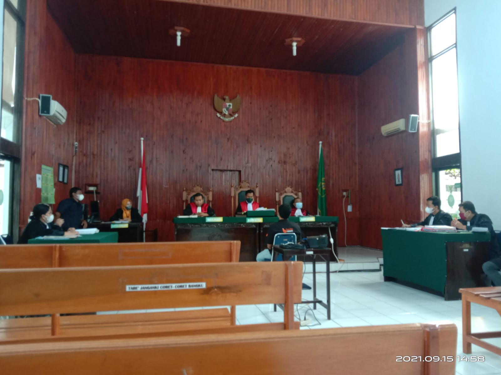 PALOPO, SABER | Sidang perkara UU ITE yang menjerat jurnalis Berita.News Muhammad Asrul kembali digelar di Pengadilan Negeri Kota Palopo, Sulawesi Selatan, pada Rabu (15/9/2021). Sidang kali ini mendengarkan keterangan Asrul selaku terdakwa.