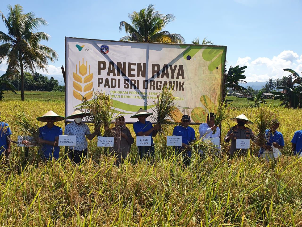 Panen perdana dilakukan para petani binaan program PSRLB PT Vale. Padi yang sukses dipanen mencapai 8,36 Ton/Hektar (Ha) dari luar lahan 3 Ha di empat desa yang ada di dua kecamatan.