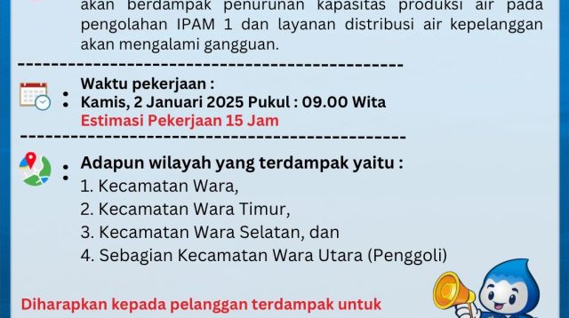 SABER, PALOPO | Perumda Tirta Mangkaluku Kota Palopo kembali umumkan terkait gangguan pelayanan pendistribusian Air […]