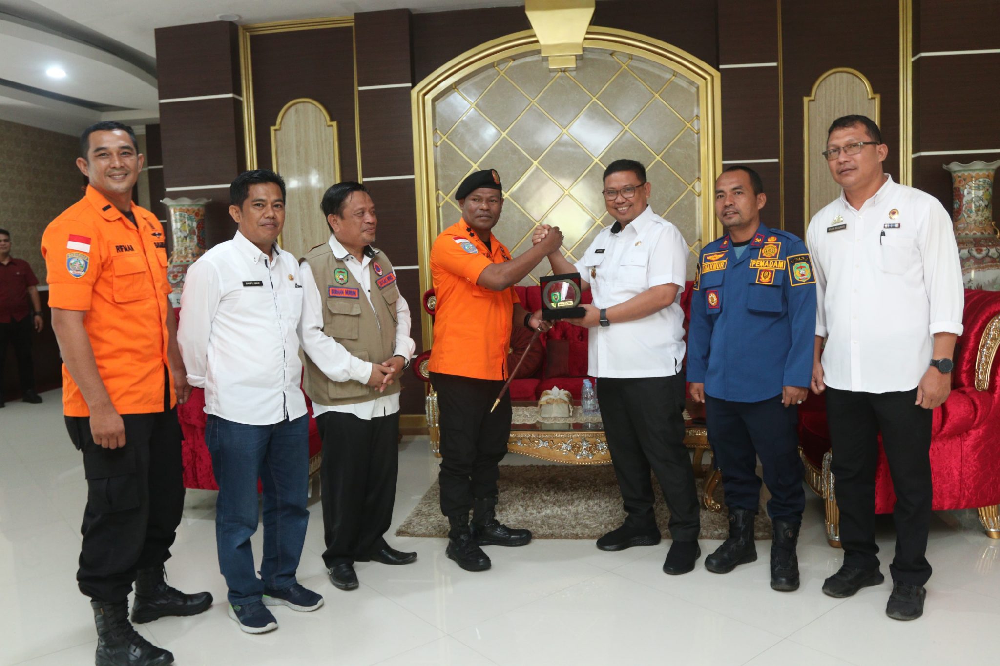 SABER, PALOPO | Pj Wali Kota Palopo, Asrul Sani, didampingi Kepala BPBD kota palopo, dan Kadis Sosial serta Kepala Damkar dan Penyelamatan kota Palopo menerima kunjungan silaturahim Kepala Basarnas Sulawesi Selatan, Mexianus Bekabel, di rumah jabatan Wali Kota, Rabu, (1/11/ 2023).