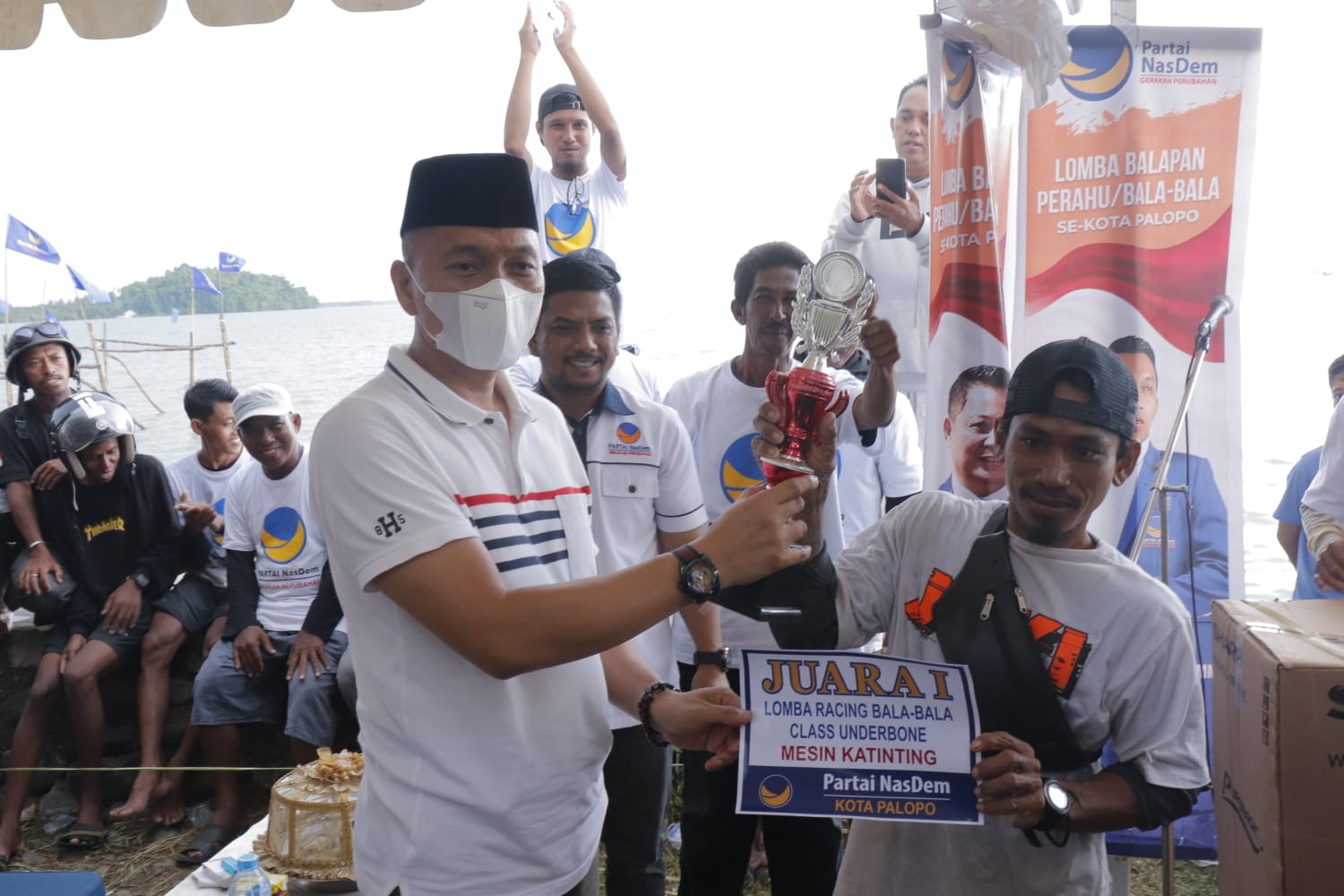 SABER, PALOPO | Lomba perahu bala-bala (perahu mesin) yang digelar Partai NasDem Kota Palopo, berakhir, Minggu (28/3/2022) sore.