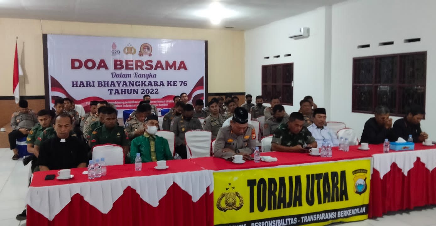 SABER, TORUT | Dalam rangka menyambut Hari Bhayangkara ke-76, Polres Toraja Utara menggelar doa bersama Lintas Agama di Aula Sanika Satyawada Polres Toraja Utara. Jumat 1 Juli 2022.