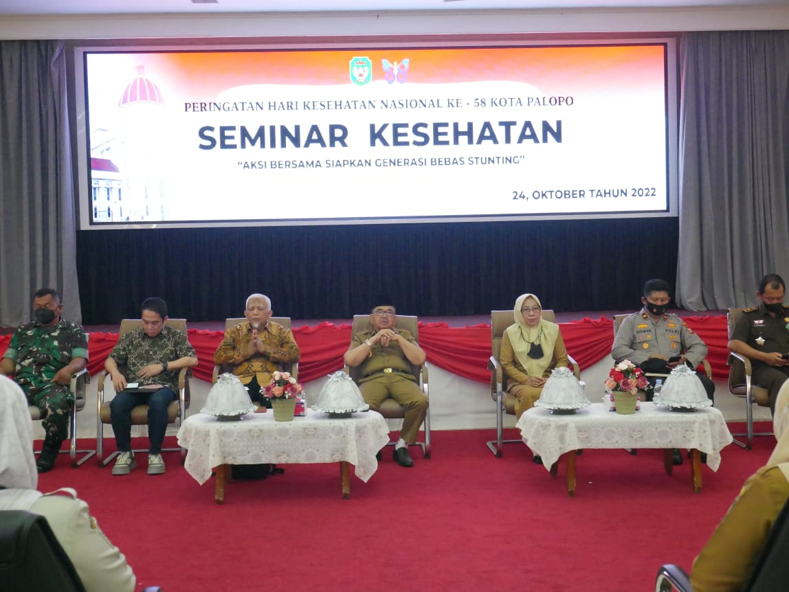 SABER, PALOPO | Walikota Palopo Judas Amir menghadiri Seminar Kesehatan dengan tema “Aksi Bersama Siapkan Generasi Bebas Stunting” di Ruang Pertemuan Ratona Kantor Walikota pada hari Senin. 24 Oktober 2022.