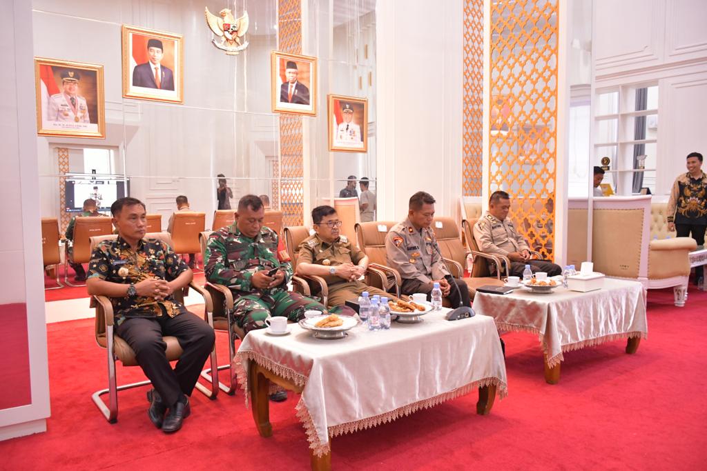SABER, PALOPO | Walikota Palopo Judas Amir beserta unsur Forkopimda menghadiri rapat Optimalisasi Penyerapan Gabah/Beras Dalam Negeri Provinsi Sulawesi Selatan, secara Virtual, di Ruang Rapat Kerja Walikota, Lantai III, pada hari Kamis, 20 Oktober 2022.