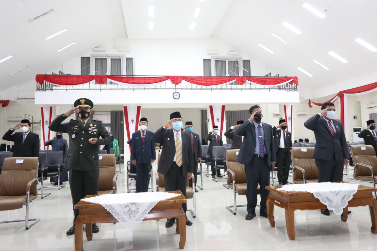 PALOPO, SATU BERITA | Walikota Palopo Drs.H.M Judas Amir bersama unsur Forkopimda Serta Pimpinan Perangkat Daerah Kota Palopo mengikuti upacara peringatan Hari Kesaktian Pancasila, melalui video conference di Ruang Pola Kantor Walikota Palopo, Kamis 1 Oktober 2020.