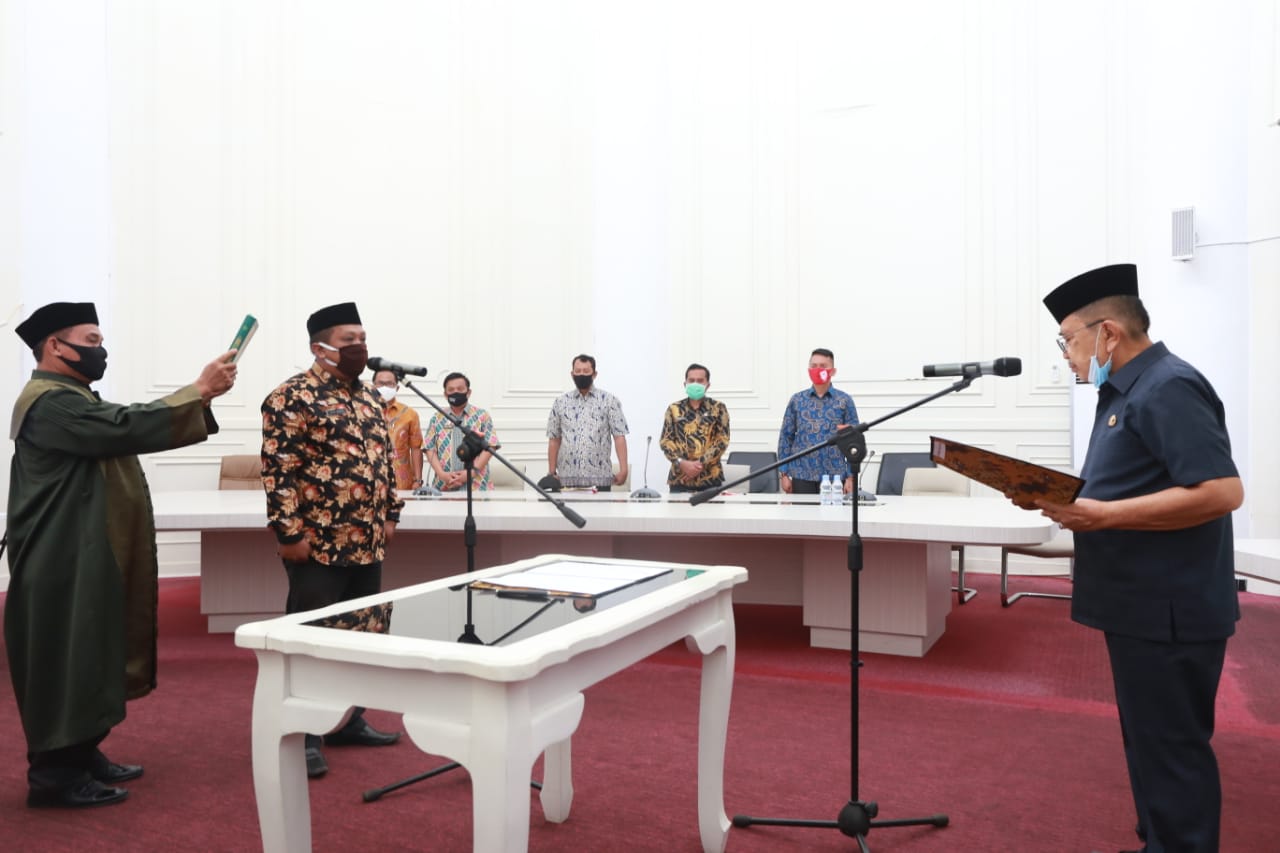PALOPO, SATU BERITA | Walikota Palopo, Drs. HM. Judas Amir mengambil sumpah jabatan dan melantik pejabat administrator dan pejabat pengawas lingkup Pemerintah Kota Palopo yang dilaksanakan di Ruang Rapat Pimpinan Lantai III Kantor Walikota Palopo, Kamis, 27 Agustus 2020.