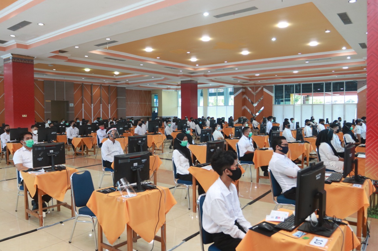 Pelaksanaan tes SKB yang dilaksanakan Pemerintah Kota Palopo kali ini digelar sesuai dengan protokol kesehatan.