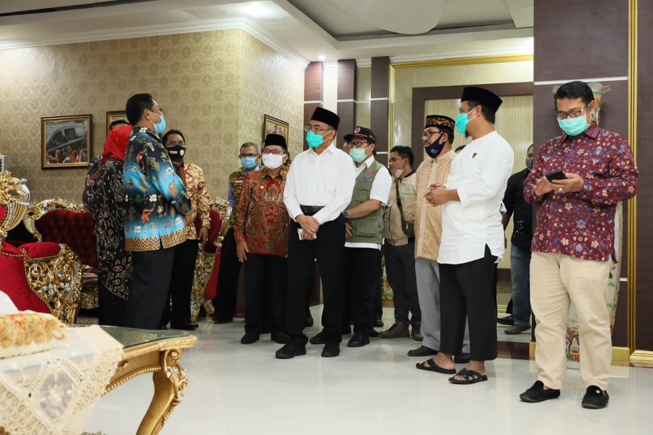 PALOPO, SATU BERITA | Berangkat dari Palopo, Walikota Palopo, Drs. HM. Judas Amir menjemput kedatangan Menteri Koordinator (Menko) Bidang Pembangunan Manusia dan Kebudayaan (PMK), Muhajir Effendy di Bandar Udara Lagaligo Bua, Kabupaten Luwu, Kamis 30 Juli 2020.