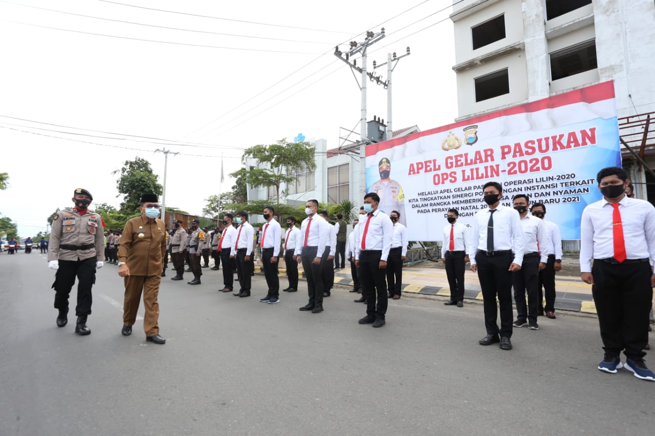 Dalam Ops Lilin 2020 ini “Kita Tingkatkan Sinergi Polri Dengan Instansi Terkait Dalam Rangka Memberikan Rasa Aman dan Nyaman Pada Perayaan Natal dan Tahun Baru 2021 Di Tengah Pandemi Covid-19 “, dilaksanakan di depan Mako Polres Palopo, Senin 21 Desember 2020.